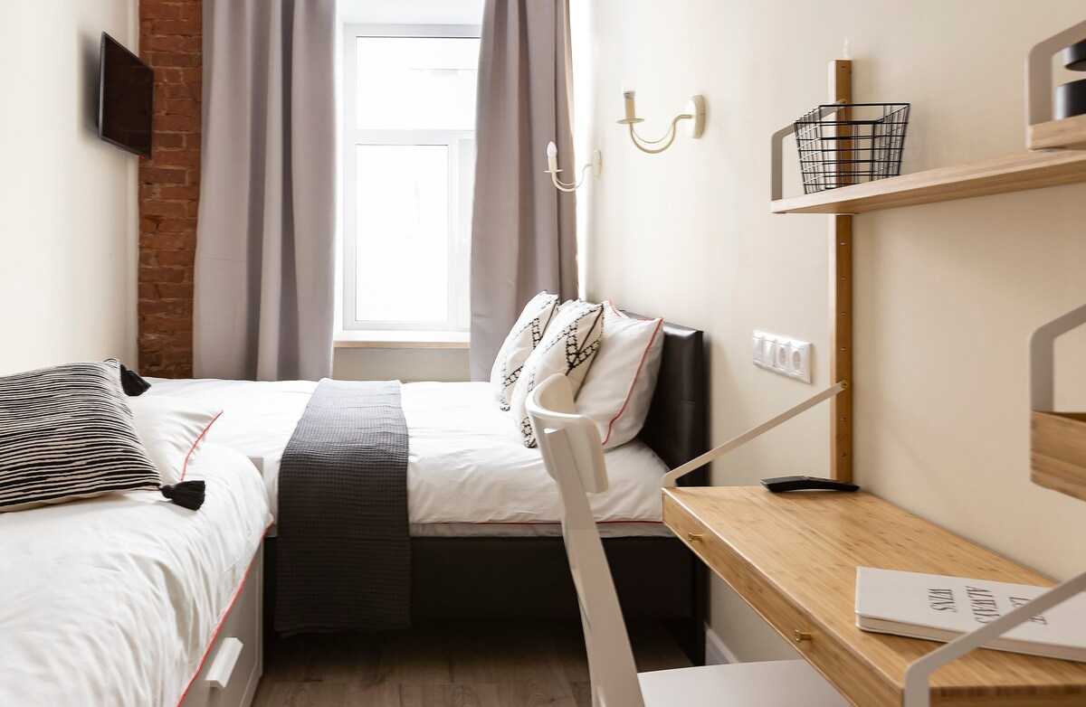Уютная квартира в скандинавском стиле расположена в самом центре культурной столицы. Две просторные спальни, рассчитанные для комфортного размещения 6 гостей. Полностью укомплектованная кухня для идеальных завтраков с чашечкой кофе по утрам.