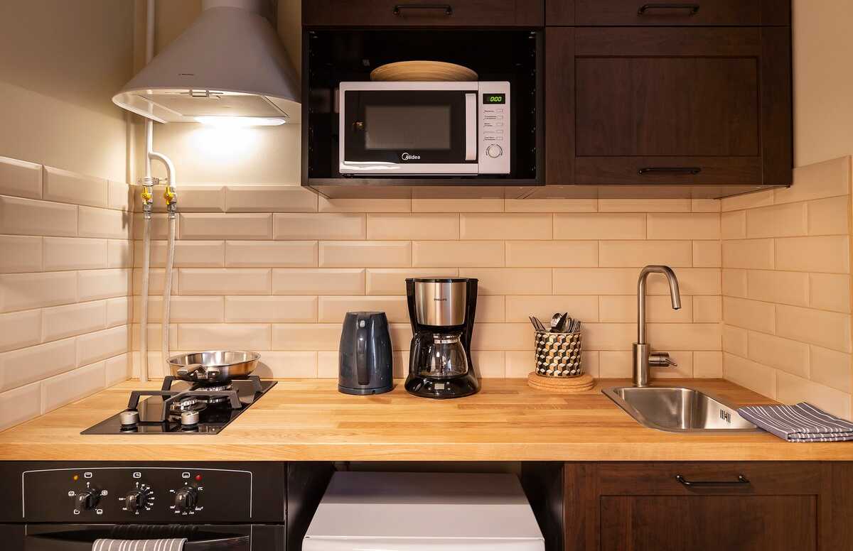 Полностью укомплектованная кухня для идеальных завтраков с чашечкой кофе по утрам.
